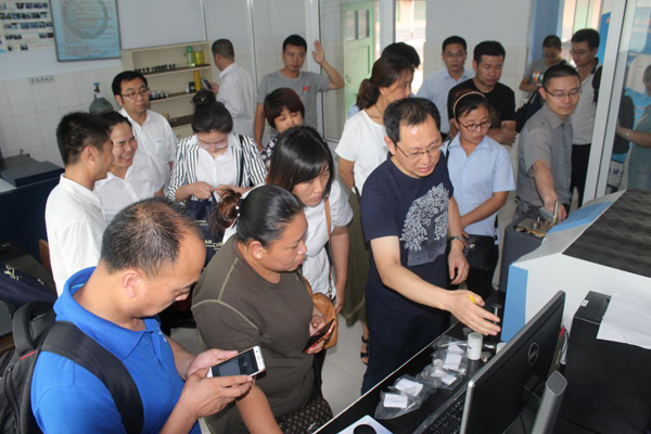下午,一行30余人來到位于藁城的當(dāng)?shù)刂T造企業(yè)——翼辰集團進行上機做樣操作。參會學(xué)者們迫不及待地拿出自己的標(biāo)樣和實際樣品在ARL easyspark直讀光譜儀上進行反復(fù)實驗,以驗證easyspark的重復(fù)性和穩(wěn)定性。不銹鋼、合金鑄鐵、高鉻鑄鐵、耐熱鋼等不同類型的樣品經(jīng)過實際測試后,大家對這款ARL直讀光譜紛紛豎起了大拇指,頻頻點頭肯定這款儀器的穩(wěn)定性能和操作維護的方便性與實用性。